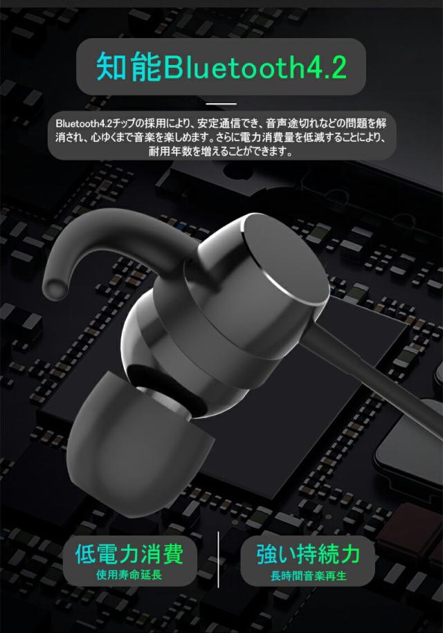 ワイヤレスイヤホン Bluetooth 4.2 高音質 8時間連続再生 IPX4防水 ネックバンド式 ヘッドセット マイク内蔵 ハンズフリー 超長待機