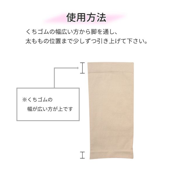 ■商品詳細 ◆商品名 ふとももシェイパー ◆素材 ポリウレタン ◆カラー ブラック・ベージュ ◆サイズ フリーサイズ ・目安となる太もも周囲サイズ 約40cm 〜 約52cm ■使用方法 くちゴムの幅広い方から脚を通し、太ももの位置まで少しずつ引き上げて下さい。 ■使用上の注意 ・着脱の際は生地に爪を立てないようにご注意下さい。 ・使用中、または使用後に異常を感じた場合はご使用をお止め下さい。 |