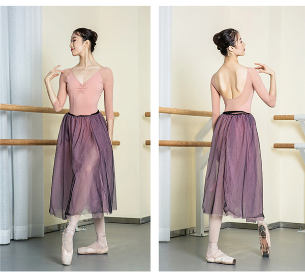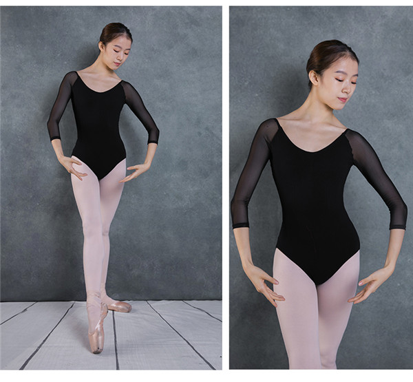 バレエレオタード 大人用 バレエ用レオタード Vネック バレエ衣装 練習衣装 七分袖 袖あり ダンス レオタード レッスン着 ジュニア dm014x2x2s3
