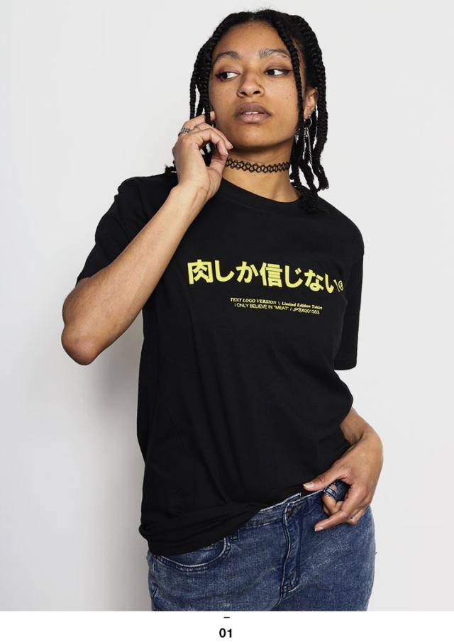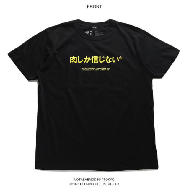 肉しか信じない 公式 おもしろ 肉 Tシャツ 半袖 ネタTシャツ トップス メンズ レディース 黒 大きいサイズ 和柄 お肉 ロゴ ヲタ映えモード おしゃれ 面白い 原宿系 外国人 インバウンド ファッション ダンス ストリート系 ブランド 服 クリスマスギフト WB-TS-TS-029-003