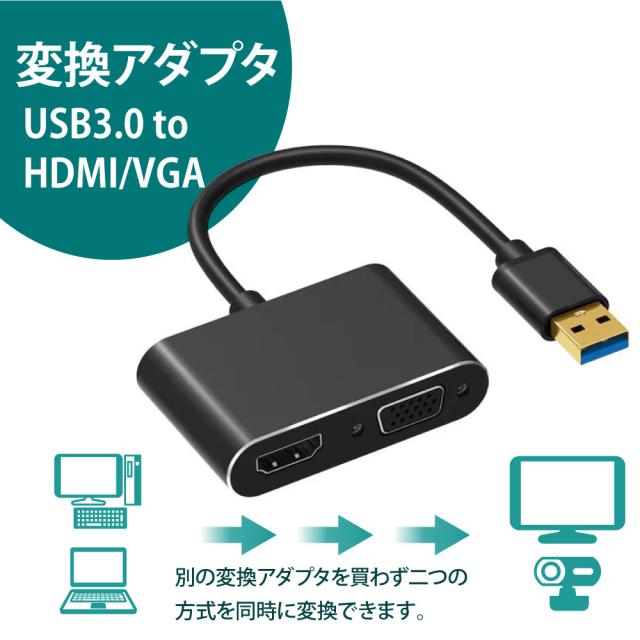 変換アダプター USB3.0 to HDMI/VGA パソコン ケーブル PC プロジェクター テレビ モニター 巣ごもり すごもり 送料無料 ゆうパケット