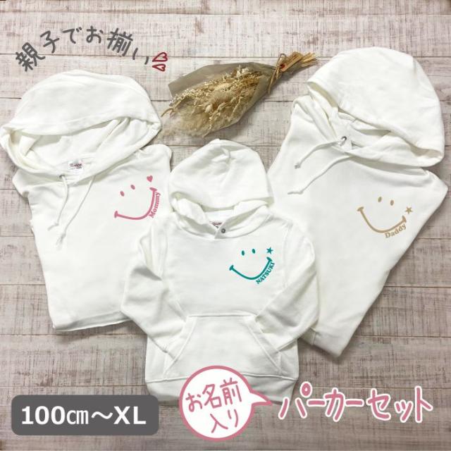 名前入り 親子3点セット リンクコーデ smile パーカー 誕生日 プレゼント ペアルック 名前 出産祝い ギフトセット 男の子 女の子 キッズ お揃い ペア リンクコーデ 家族写真 親子セット 親子ペア ペアルック 家族コーデ DADDY MOMMY クリスマス