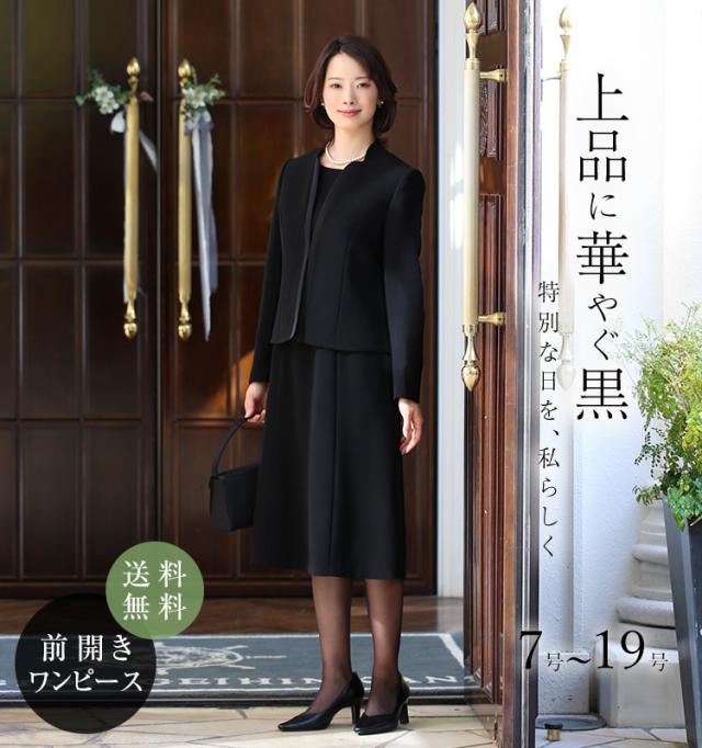 【映画「ブラックショーマン」出演女優着用】 喪服 レディース ブラックフォーマル 礼服 スーツ ワンピース ロング丈 前開き 大きいサイズ 9号 11号 13号 15号 17号 19号 BS-2112