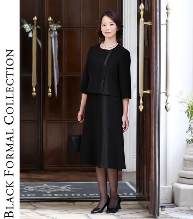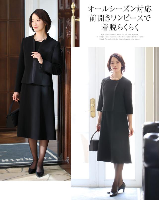 [喪服 レディース ブラックフォーマル 礼服 スーツ ロング丈 大きいサイズ ゆったり 前開き ワンピース オールシーズン 黒 ブラック フォーマル ロング 30代 40代 50代 BS-2112 送料無料]