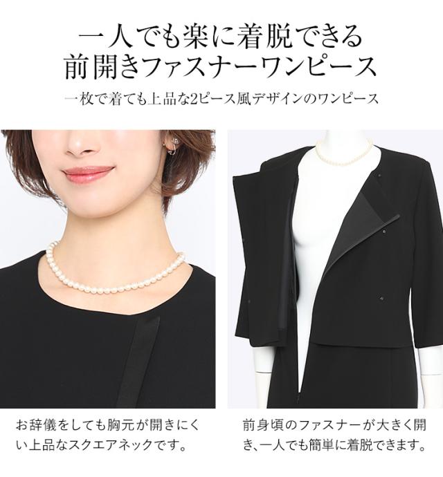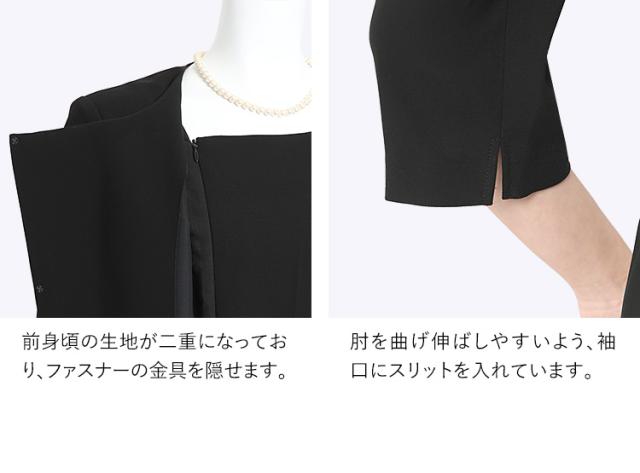 ■前開きファスナーで一人でも着脱簡単、ジャケットを脱いでも上品な2ピース風ワンピース