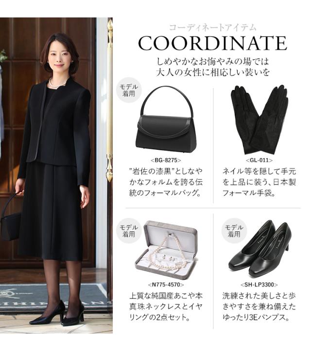 ・上質な生地に特殊な表面処理「濃染加工」を施すことで、スーパーブラックと呼ばれる“深い黒”を実現しました。しっとりとした深みのある黒はしめやかな席に相応しい、高級感ある凛とした佇まいを生み出します。