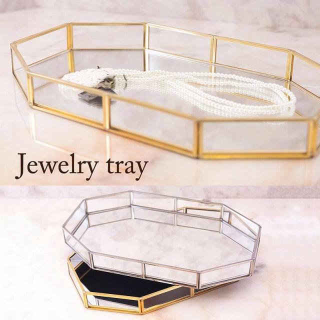 ガラス ミラー トレイ ジュエリー アクセサリー トレイ 小物入れ
