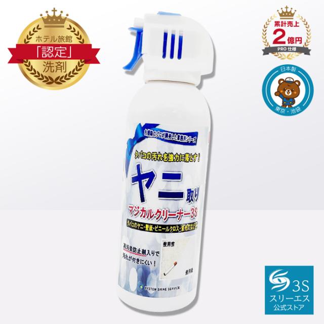 ヤニ取りクリーナー 3S (240ml / 本体) 頑固な汚れに効く!(業務用) 壁紙 クロス ビニールクロス 部屋 キッチン 家具 蛍光灯 エアコン 車 トラック (飲食店/中古車販売業者も愛用する) 黄ばみ 油汚れ 強力 ヤニ取り 汚れ落とし クリーナー 洗剤 タバコ 消臭にも (日本製)