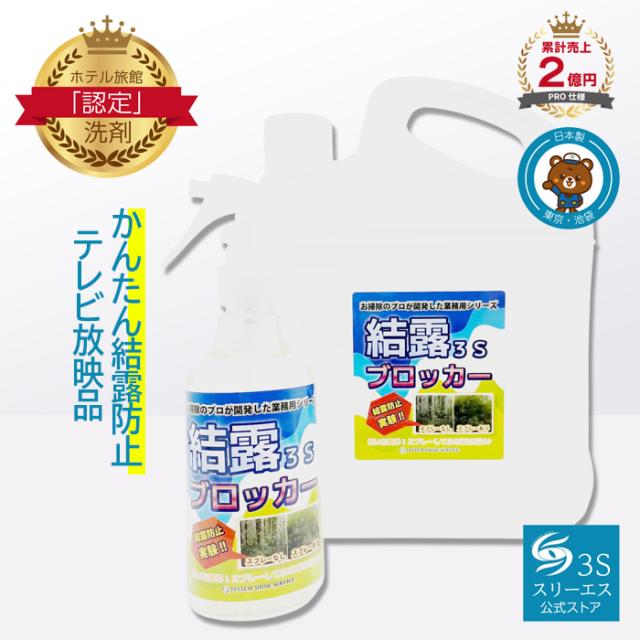 \ポイント10倍!/ スリーエス 結露ブロッカー3S 4L 大容量 + スプレーボトル プロ仕様 結露対策 結露防止スプレー 結露 防止剤 簡単 コーティング 最大14日間 お部屋 室内 窓 グッズ ショーケース ウィンド ドア お手軽 湿度 冬 曇り 対策 梅雨 雨 季節商品 シーズン商品
