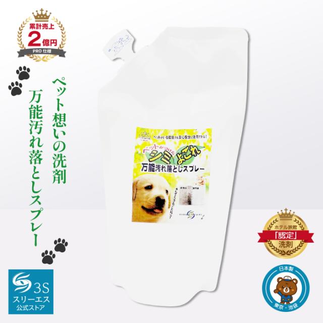 ペット 汚れ落とし スプレー 万能3S (250ml / つめかえ用) 大事な家族の一員、ペット想いの洗剤をつくりました (ペットの泊まれる宿100選) 推奨 ペット用品 布 マット ソファー 犬 猫 チンチラ ハムスター 小動物 汚れ落とし クリーナー 洗剤 業務用