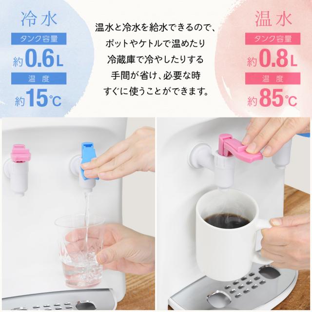 温水と冷水を給水できるので、ポットやケトルで温めたり冷蔵庫で冷やしたりする手間が省けます。