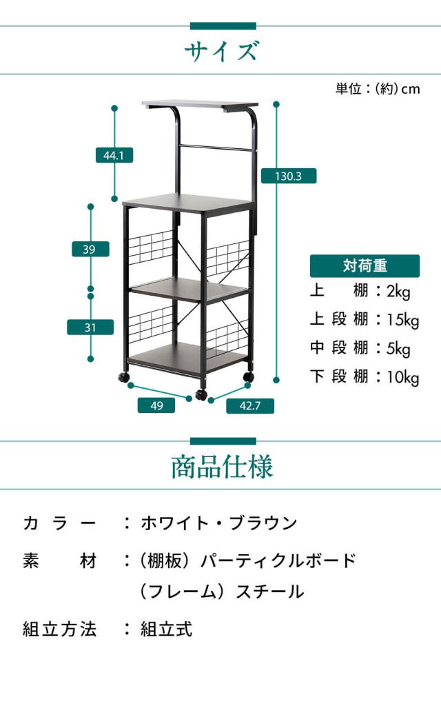 ★クーポンあり★ レンジ台 レンジラック レンジラック RGK-49 キッチンラック キッチン収納 スペース活用 4段 レンジ台 コンパクト 収納ラック 食器 キッチン家電 調味料 キッチンツール 送料無料 新生活 インテリア
