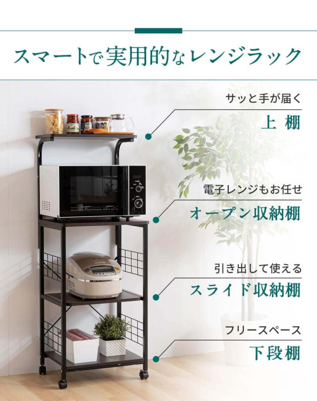 スペース有効活用で収納力アップ、シンプルで使いやすいレンジラックです。