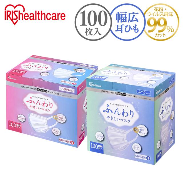 マスク 不織布 100枚入 ふつうサイズ 小さめサイズ ふんわりやさしいマスク PK-FY100L ふつう 小さめ 不織布マスク ふんわり 優しい 花粉 やわらか 痛くならない 風邪 ハウスダスト 花粉症 アイリスオーヤマ
