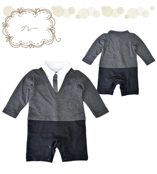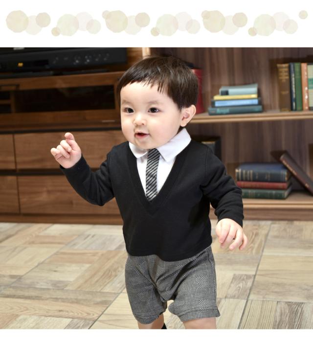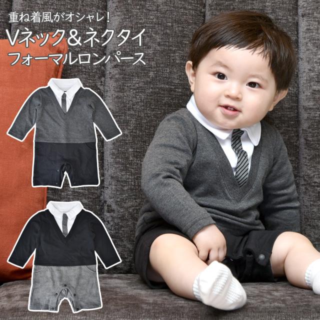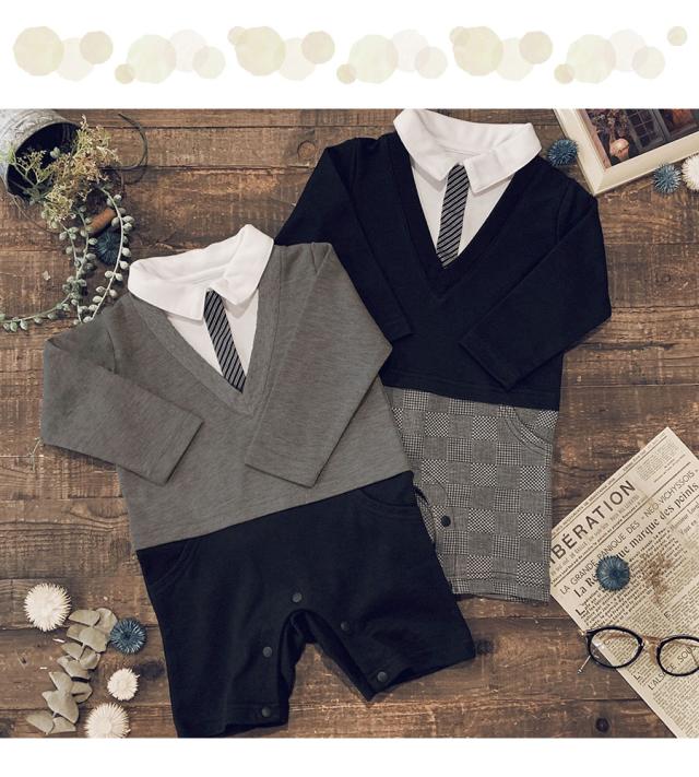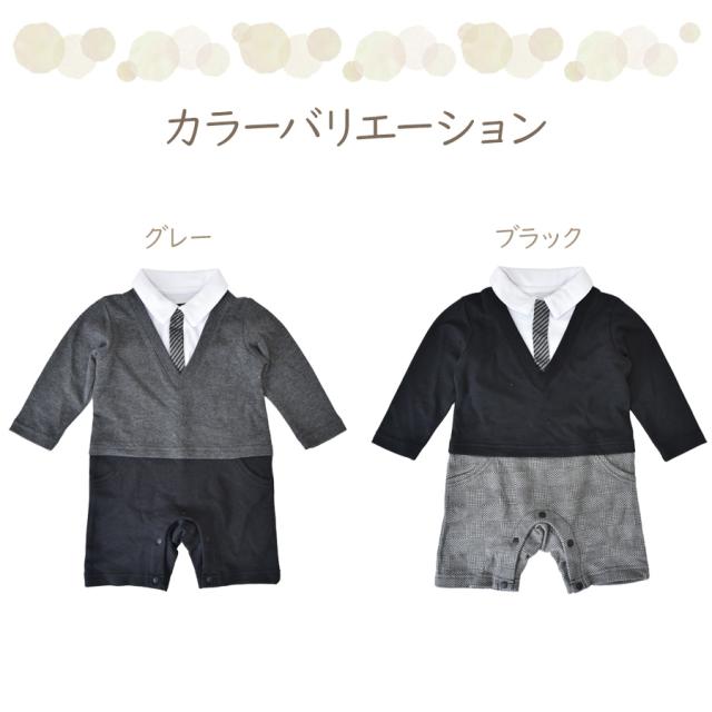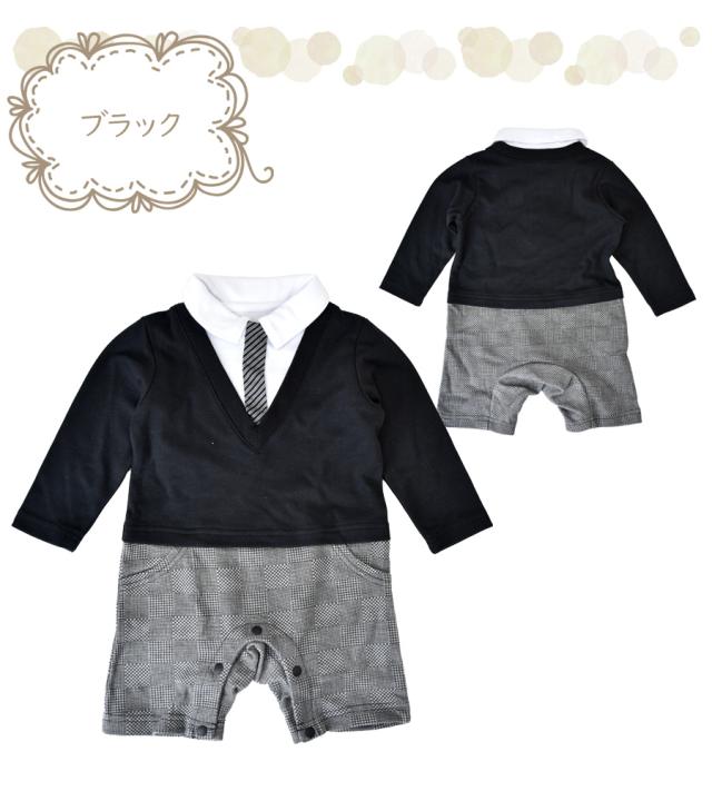 在庫処分 ベビー フォーマル 男の子 ロンパース スーツ ネクタイ 長袖 カバーオール ベビー 赤ちゃん 子供 こども 子ども メール便送料無料