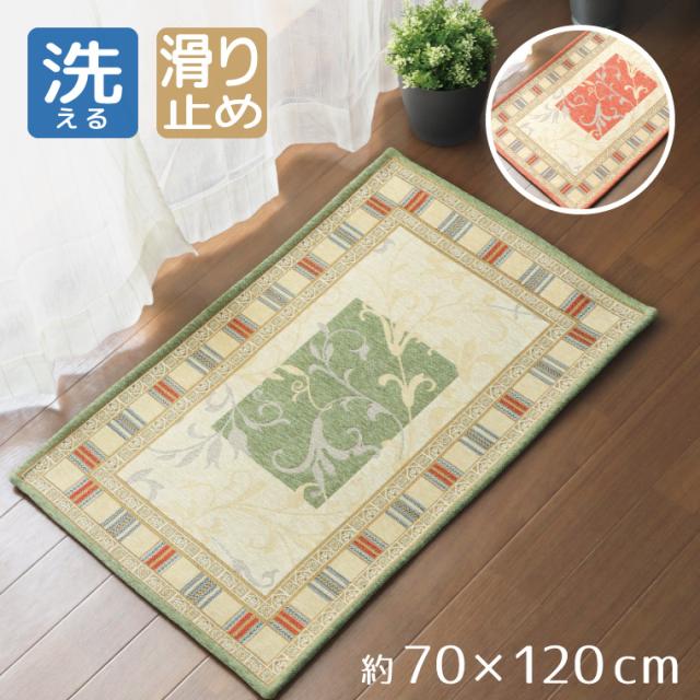 マット 玄関マット 洗える 約70×120cm プラド シェニール ゴブラン織り リーフ柄 ヨーロピアン 花柄 フローラル 室内 屋内 エントランス おしゃれ 爽やか 滑りにくい 在宅 勤務