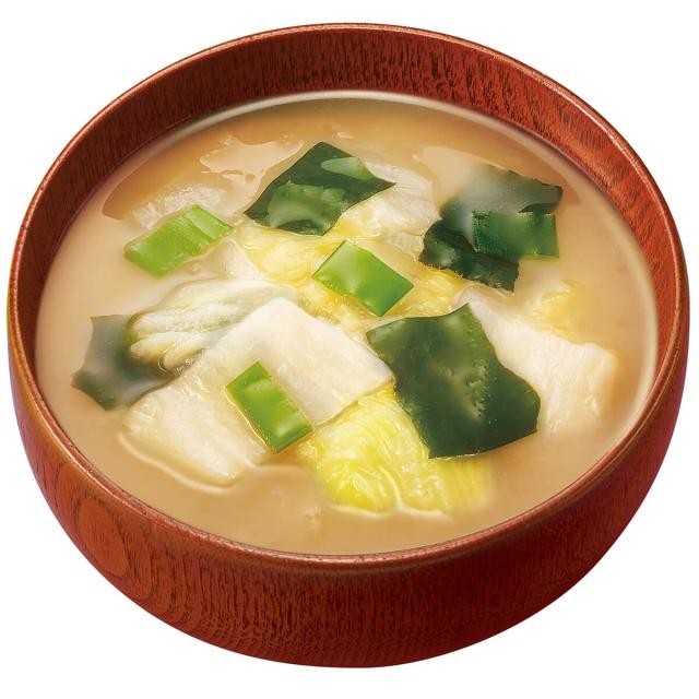 | 原材料 | 米みそ(国内製造)、はくさい、ねぎ、風味調味料、乾燥わかめ、でん粉、昆布エキスパウダー、酵母エキスパウダー/調味料(アミノ酸等)、酸化防止剤(ビタミンE)、酸味料、(一部にさば・大豆・魚醤(魚介類)を含む) |