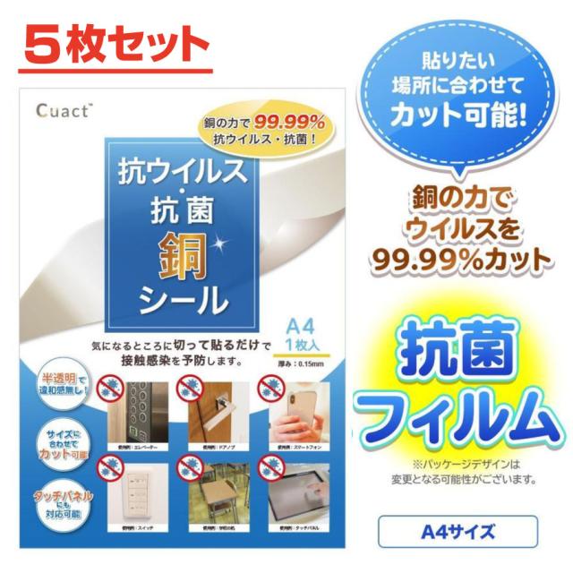抗菌 銅 フィルム Cu シール A4【5枚セット】厚さ0.15mm 接触感染予防 エレベーター ボタン ドアノブ 机 タッチパネル