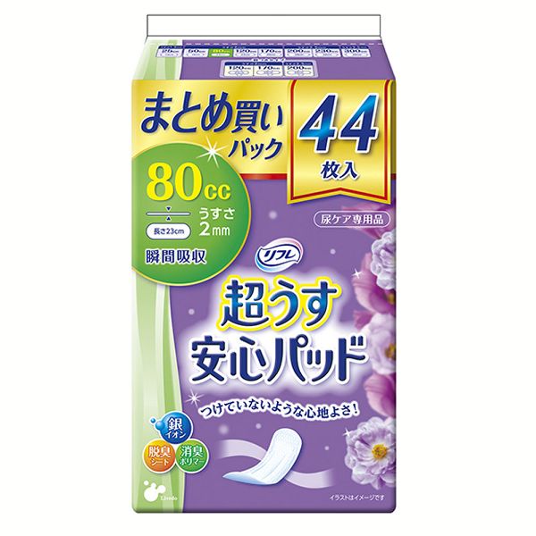 尿取りパッド 超うす安心パッド 80ccまとめ買いパック44枚 920522 リフレ パッド 軽失禁 尿もれ 尿ケア まとめ買い 女性向け 大人