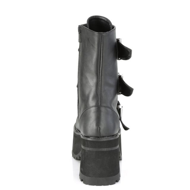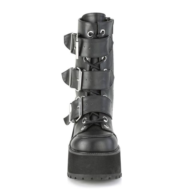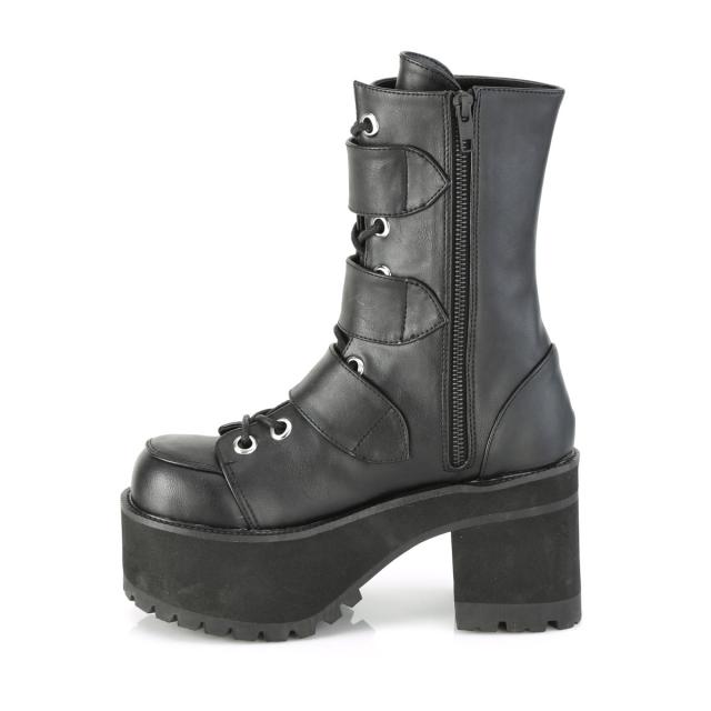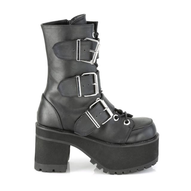 Demonia(デモニア) RANGER-308 トリプルバックルストラップ 厚底ショートブーツ サイドジップ つや消し黒◆取り寄せ