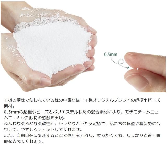 | 枕の中素材 | 超極小ビーズ素材(王様オリジナルブレンド:超極小ビーズ95%とポリエステルわた5%の混合) |