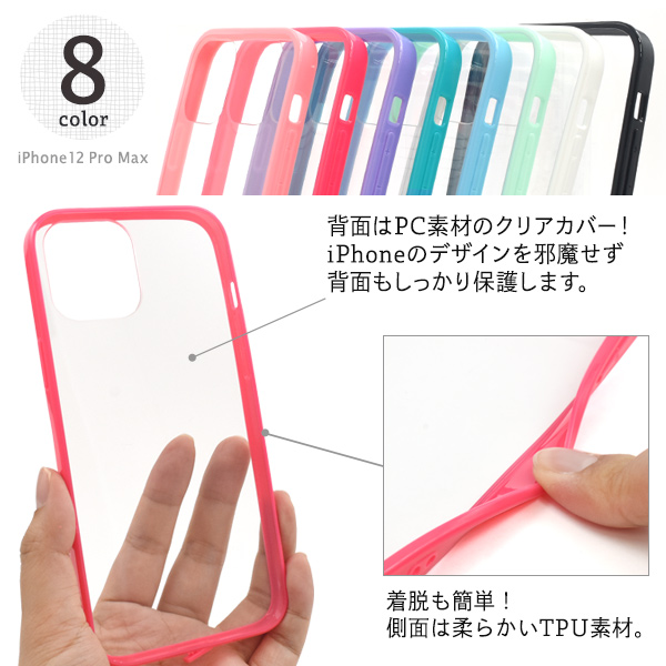 スマートフォンケース iPhone12ProMax用 カラーバンパー クリアケース 装着簡単 ストラップホール付き 携帯ケース 背面保護 スマホケース アイフォンケース スマホカバー バックカバー シンプル ノーマル 大人可愛い オトナ女子 スタンダード SoftBank au docomo
