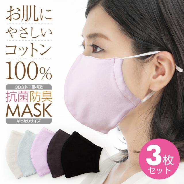 マスク 抗菌 防臭 コットン100% 3枚セット 感染対策 花粉 洗える カラー 布マスク 肌荒れ おしゃれ おすすめ 二重 優しい肌心地 立体