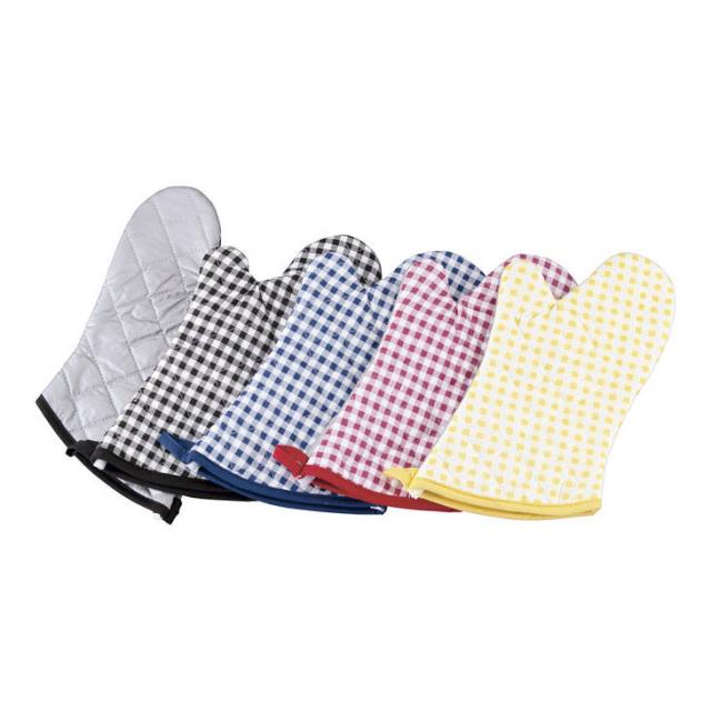 TKG チェック布製オーブンミット イエロー(左右1組)