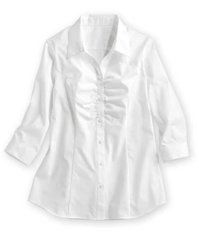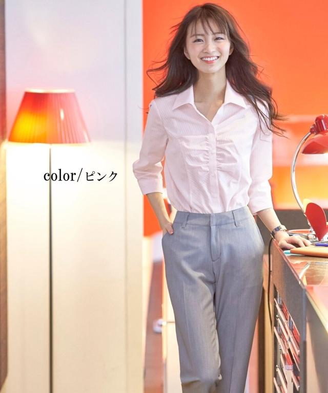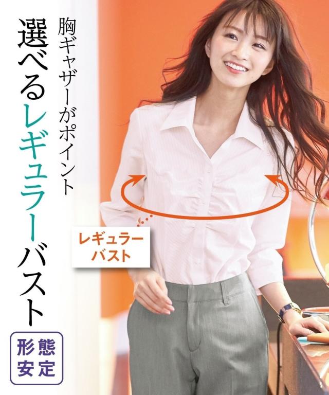 形態安定ドビー織胸ギャザー7分袖シャツ(レギュラーバスト)