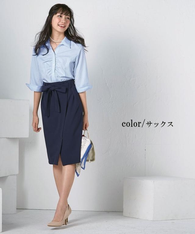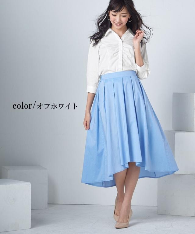 レディース 形態安定 ドビー織 胸ギャザー 7分袖 シャツ レギュラーバスト オフホワイト/サックス/ピンク S/M/L ニッセン nissen
