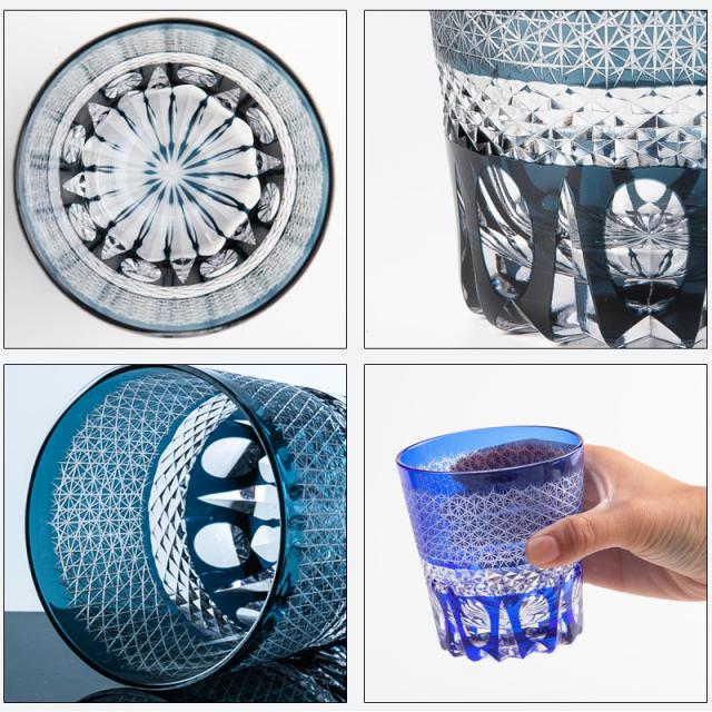 切子グラス 桐箱入り オールドグラス インクブルー 青 おしゃれ 菊つなぎ ロックグラス タンブラー グラス コップ 食洗機対応 送料無料 結婚祝い プレゼント ギフト 贈り物 酒器 焼酎 記念品 ギフトBOX k_name