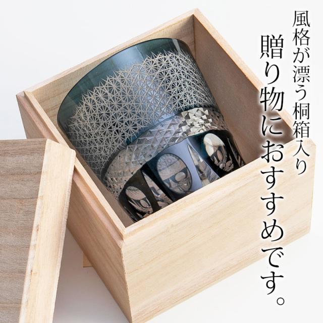 [内容]単品(1個) 桐箱入り切子グラス 桐箱入り オールドグラス インクブルー 青 おしゃれ 菊つなぎ ロックグラス タンブラー グラス コップ 食洗機対応 送料無料 結婚祝い プレゼント ギフト 贈り物 酒器 焼酎 記念品 ギフトBOX