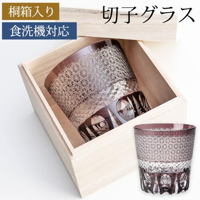 切子グラス 桐箱入り オールドグラス パープル 紫 おしゃれ 菊つなぎ ロックグラス タンブラー グラス コップ 食洗機対応 送料無料 結婚祝い プレゼント ギフト 贈り物 酒器 焼酎 退職祝い 誕生日 お祝い 記念品 ギフトBOX k_name