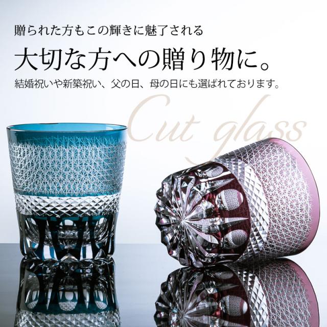 受け継がれたカットグラスの工法で、ひとつひとつ手づくりされた切子グラスです。