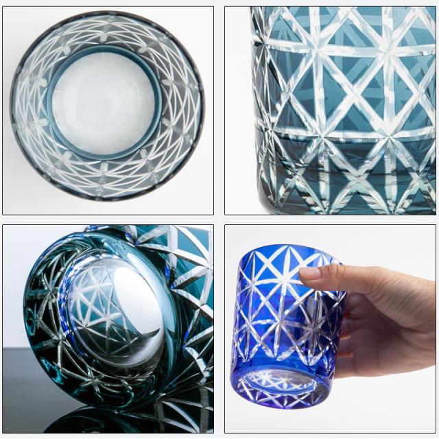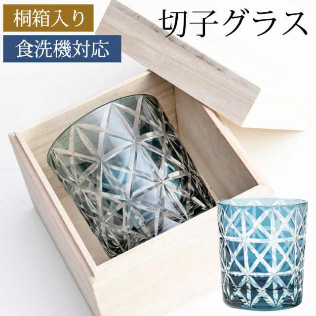 切子オールドグラス 桐箱入り 切子グラス タンブラー ロックグラス おしゃれ コップ ガラス 麻の葉 インクブルー 青 食洗機対応 プレゼント ギフト 贈り物 酒器 タンブラー 日本酒 焼酎 定年 退職祝い 誕生日 お祝い 記念品 ギフトBOX k_name