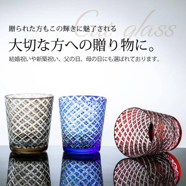 受け継がれたカットグラスの工法で、ひとつひとつ手づくりされた切子グラスです。