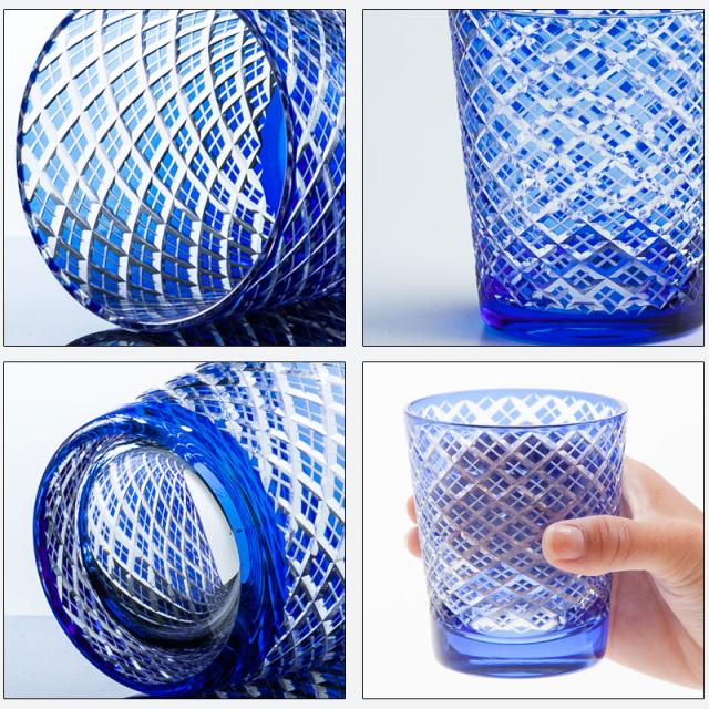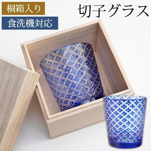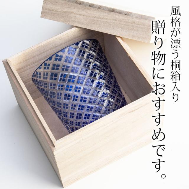 切子オールドグラス 切子グラス 桐箱入り ロックグラス おしゃれ コップ ガラス 矢来 コバルトブルー 濃青色 食洗機対応 ビール お酒 冷酒 焼酎 日本酒 酒器 プレゼント ギフト 贈り物 k_name
