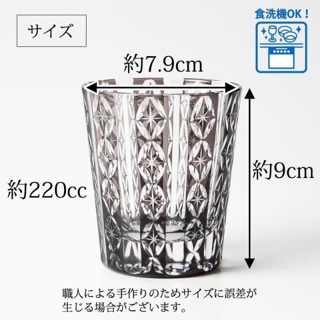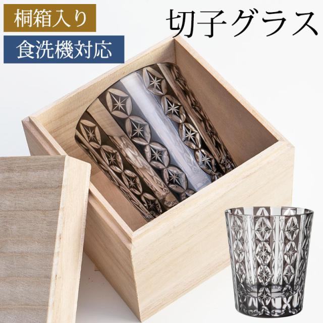 切子オールドグラス 桐箱入り 七宝 薄墨色 グレー 食洗機対応 おしゃれ 来客用 ガラス コップ ビール お酒 冷酒 焼酎 日本酒 酒器 プレゼント ギフト 贈り物 k_name