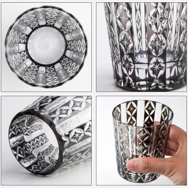 内容 単品(1個) 桐箱入り切子オールドグラス 桐箱入り 七宝 薄墨色 グレー 食洗機対応 おしゃれ 来客用 ガラス コップ ビール お酒 冷酒 焼酎 日本酒 酒器 プレゼント ギフト 贈り物