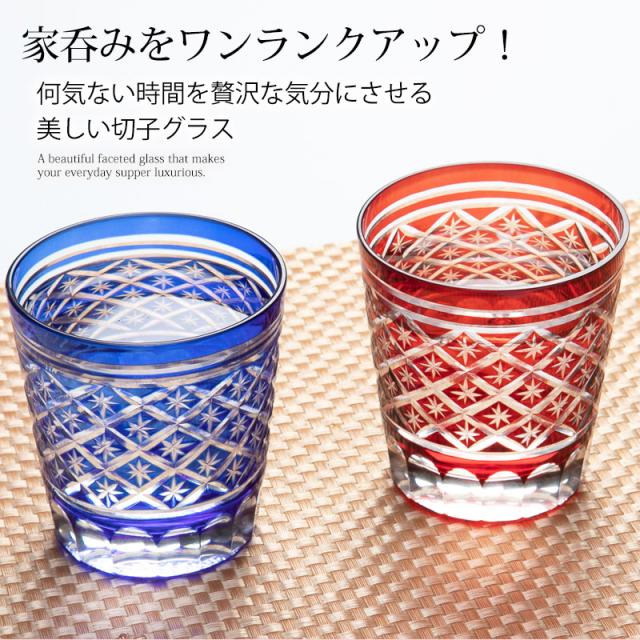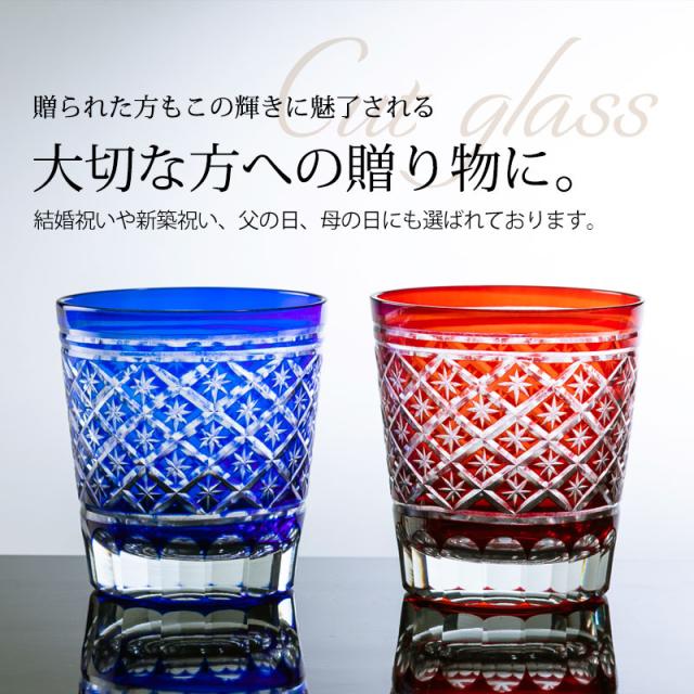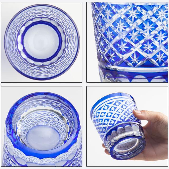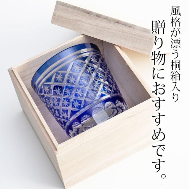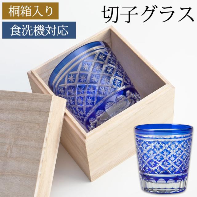 切子オールドグラス 切子グラス 桐箱入り ロックグラス おしゃれ コップ ブルー 濃青色 酒器 来客用 星 食洗機対応 ビール お酒 冷酒 焼酎 日本酒 酒器 プレゼント ギフト 贈り物 k_name
