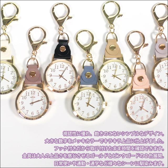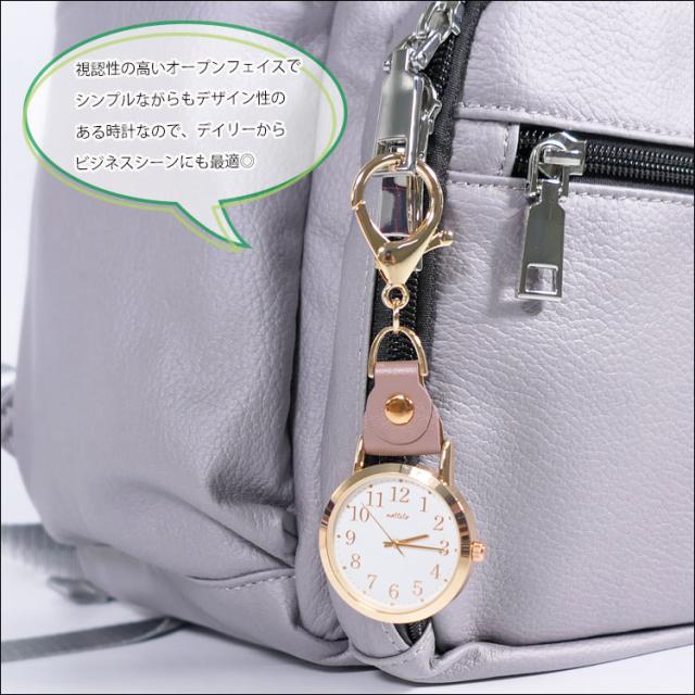 キーホルダー時計 リュック 装着 フック式 革ベルト レザー 可愛い ナースグッズ ナース時計 介護 ダイヤルウォッチ 軽い 子ども 学生 塾 ギフト 誕生日 プレゼント