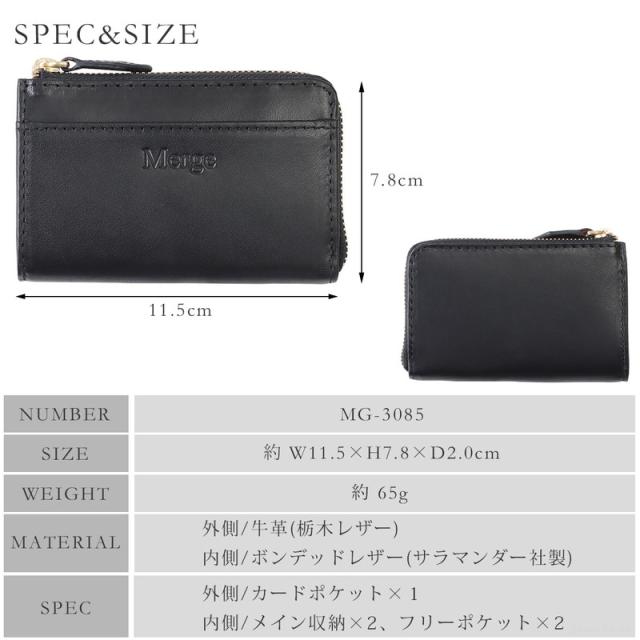 財布 メンズ ミニ財布 L字ファスナー 栃木レザー ボンデッドレザー 本革 牛革 YKKファスナー Merge マージ 【MG-3085】 ブランド 人気