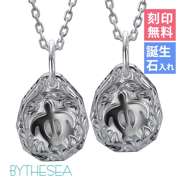 ハワイアンジュエリー ネックレス ペア 誕生石 ホヌ ハワイアンジュエリー ペアネックレス 刻印 2本セット 浮彫り ホヌ Lサイズ お守り シルバー925 ギフト ラッピング BY THE SEA バイザシー カップル 夫婦 プレゼント ホワイトデー 卒業式 入学式 【品番:CG-SP325LP】