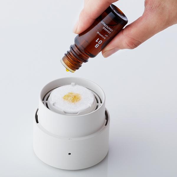 @aroma(アットアロマ) ファンディフューザー ko ホワイト静かにふんわりと暮らしに寄り添うファンタイプのアロマディフューザー。操作は電源スイッチのオン・オフだけ。コンパクトなサイズでありながら、パワフルなファンで空間を香りで満たします。 内臓のオイルパッドに100%天然エッセンシャルオイルを染み込ませると、心地よく広がる香り。 静かな音が魅力で、じっくり集中したいときや会話やBGMを妨げることなく香りをお楽しみいただけます。 コードレス(電池) / USBケーブル の使い分けができるので、場所を選ばず、持ち運びもしやすいディフューザーです。 水不使用で手軽にアロマを楽しめて、インテリアに馴染むスタイリッシュなデザインなのでギフトにも◎。 @aroma製のオイル(5ml,10ml)と自由に組み合わせてお使いいただけます。(※本品にオイルは付属していません。) | ||