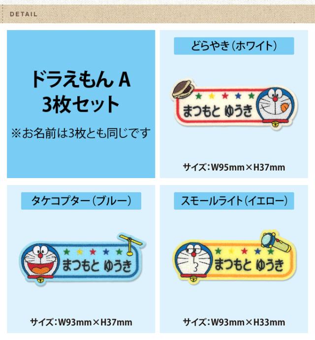 お名前ワッペン ドラえもん キャラクター 1行 3枚セット ネームワッペン アイロン 入園 刺繍 プレゼント OR