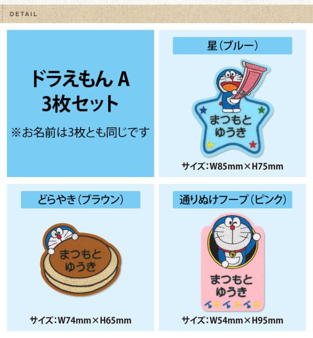 お名前ワッペン ドラえもん キャラクター 2行 3枚セット ネームワッペン アイロン 入園 刺繍 プレゼント OR