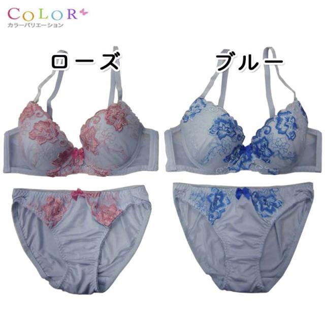 ブラジャー&ショーツセット ブラジャー ショーツ セット ブラセット ブラショーツ バラ刺繍 B65 B70 B75 C65 C70 C75 D65 D70 D75 インナー・下着・ナイトウエア レディース インナー セット 3/4カップブラ&ショーツ メール便送料無料