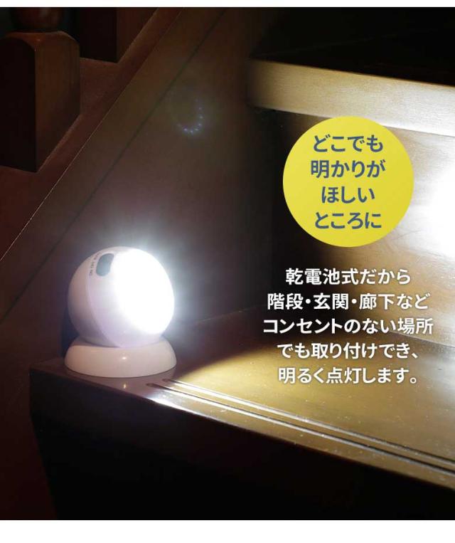 ●乾電池式でコンセントがない場所でも取り付けでき明るく点灯します。単4乾電池3本使用。