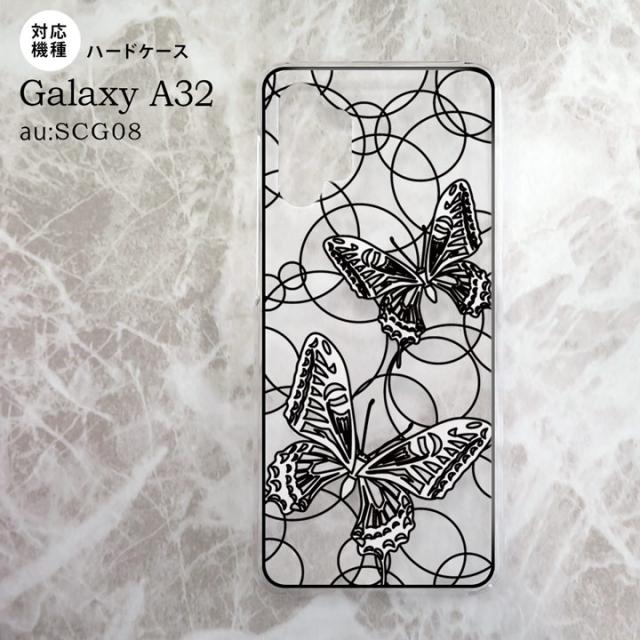 SCG08 Galaxy A32 背面ケース カバー ステンドグラス風 蝶 ホワイト ステンドグラス風