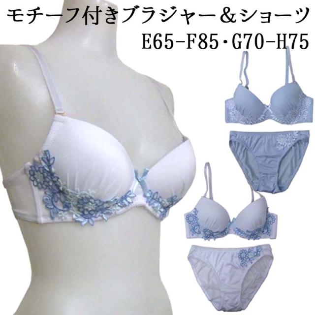 ブラジャー ショーツ セット ブラジャー&ショーツ ブラセット ブラショーツ ブラショー 花モチーフ E65 E70 E75 E80 E85 F65 F70 F75 F80 F85 G70 G75 H70 H75 インナー 下着 ナイトウエア レディース メール便送料無料